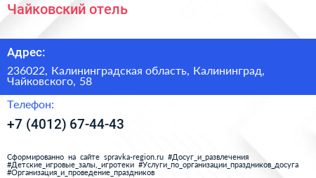 Чайковский, отель по адресу 236022, Калининградская область, Калининград, Чайковского, 58 в дальнейшем Организация, размещена в следующих категориях: