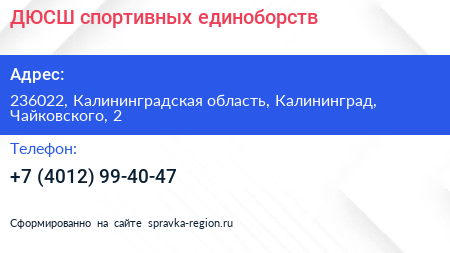 ДЮСШ спортивных единоборств по адресу 236022, Калининградская область, Калининград, Чайковского, 2 в дальнейшем Организация, размещена в следующих категориях: