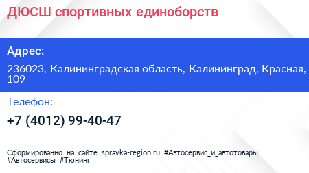 ДЮСШ спортивных единоборств по адресу 236023, Калининградская область, Калининград, Красная, 109 в дальнейшем Организация, размещена в следующих категориях:
