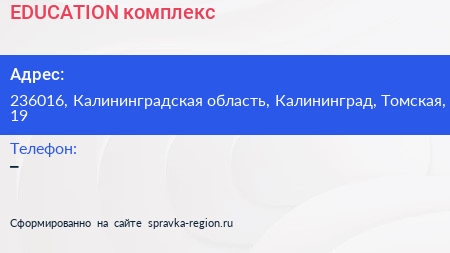 EDUCATION, комплекс по адресу 236016, Калининградская область, Калининград, Томская, 19 в дальнейшем Организация, размещена в следующих категориях: