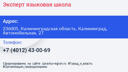 Эксперт, языковая школа по адресу 236005, Калининградская область, Калининград, Автомобильная, 27 в дальнейшем Организация, размещена в следующих категориях: