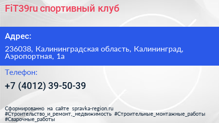 FiT39ru, спортивный клуб по адресу 236038, Калининградская область, Калининград, Аэропортная, 1а в дальнейшем Организация, размещена в следующих категориях: