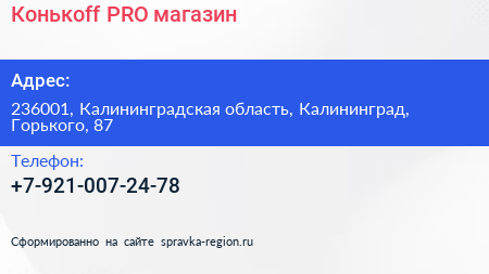 Конькоff & PRO, магазин по адресу 236001, Калининградская область, Калининград, Горького, 87 в дальнейшем Организация, размещена в следующих категориях: