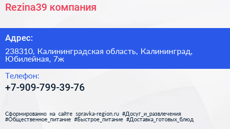 Rezina39, компания по адресу 238310, Калининградская область, Калининград, Юбилейная, 7ж в дальнейшем Организация, размещена в следующих категориях: