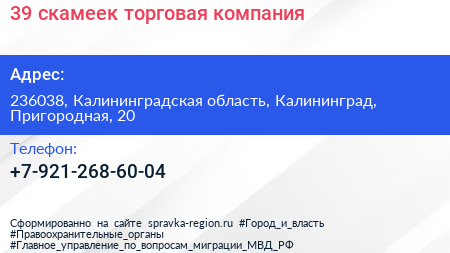 39 скамеек, торговая компания по адресу 236038, Калининградская область, Калининград, Пригородная, 20 в дальнейшем Организация, размещена в следующих категориях:
