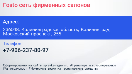 Fosto, сеть фирменных салонов по адресу 236048, Калининградская область, Калининград, Московский проспект, 255 в дальнейшем Организация, размещена в следующих категориях: