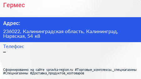 Гермес по адресу 236022, Калининградская область, Калининград, Нарвская, 54 к8 в дальнейшем Организация, размещена в следующих категориях: