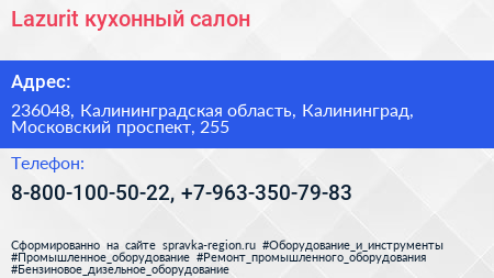 Lazurit, кухонный салон по адресу 236048, Калининградская область, Калининград, Московский проспект, 255 в дальнейшем Организация, размещена в следующих категориях: