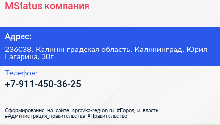 MStatus, компания по адресу 236038, Калининградская область, Калининград, Юрия Гагарина, 30г в дальнейшем Организация, размещена в следующих категориях: