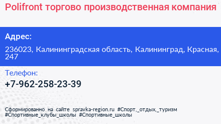 Polifront, торгово-производственная компания по адресу 236023, Калининградская область, Калининград, Красная, 247 в дальнейшем Организация, размещена в следующих категориях: