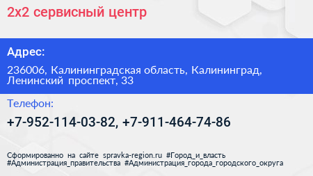 2х2, сервисный центр по адресу 236006, Калининградская область, Калининград, Ленинский проспект, 33 в дальнейшем Организация, размещена в следующих категориях: