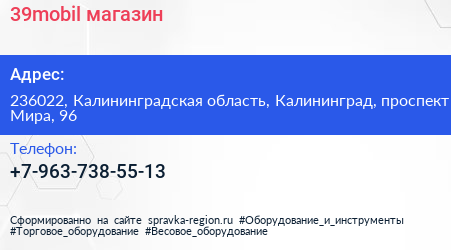 39mobil, магазин по адресу 236022, Калининградская область, Калининград, проспект Мира, 96 в дальнейшем Организация, размещена в следующих категориях: