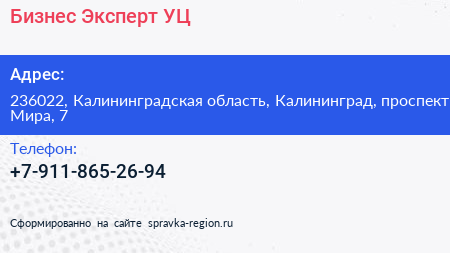 Бизнес Эксперт УЦ по адресу 236022, Калининградская область, Калининград, проспект Мира, 7 в дальнейшем Организация, размещена в следующих категориях: