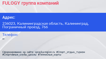 FULOGY, группа компаний по адресу 236023, Калининградская область, Калининград, Пограничный проезд, 766 в дальнейшем Организация, размещена в следующих категориях: