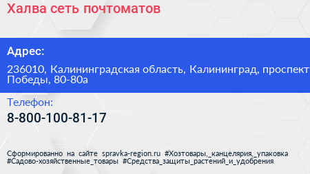 Халва, сеть почтоматов по адресу 236010, Калининградская область, Калининград, проспект Победы, 80-80а в дальнейшем Организация, размещена в следующих категориях: