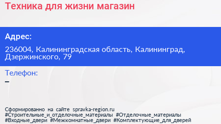 Техника для жизни, магазин по адресу 236004, Калининградская область, Калининград, Дзержинского, 79 в дальнейшем Организация, размещена в следующих категориях: