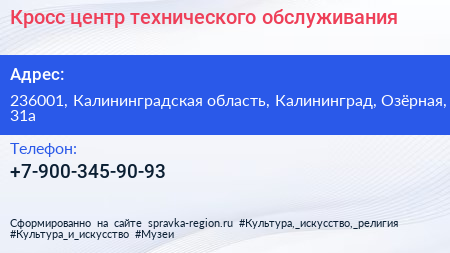 Кросс, центр технического обслуживания по адресу 236001, Калининградская область, Калининград, Озёрная, 31а в дальнейшем Организация, размещена в следующих категориях: