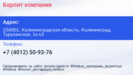 Барлит, компания по адресу 236001, Калининградская область, Калининград, Туруханская, 1а к3 в дальнейшем Организация, размещена в следующих категориях: