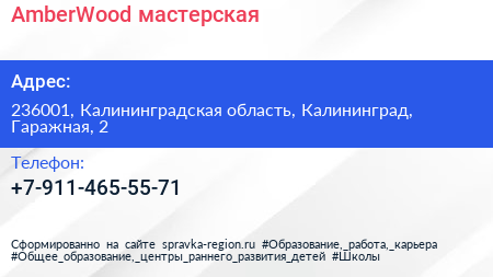 AmberWood, мастерская по адресу 236001, Калининградская область, Калининград, Гаражная, 2 в дальнейшем Организация, размещена в следующих категориях: