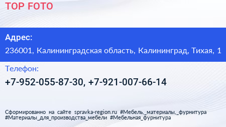 TOP FOTO по адресу 236001, Калининградская область, Калининград, Тихая, 1 в дальнейшем Организация, размещена в следующих категориях: