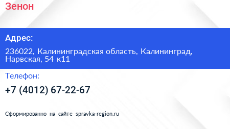 Зенон по адресу 236022, Калининградская область, Калининград, Нарвская, 54 к11 в дальнейшем Организация, размещена в следующих категориях: