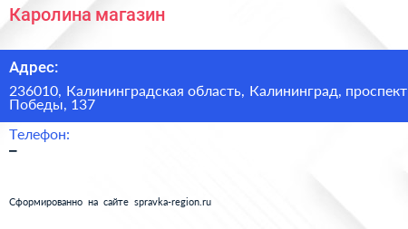 Каролина, магазин по адресу 236010, Калининградская область, Калининград, проспект Победы, 137 в дальнейшем Организация, размещена в следующих категориях:
