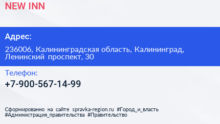 NEW INN по адресу 236006, Калининградская область, Калининград, Ленинский проспект, 30 в дальнейшем Организация, размещена в следующих категориях:
