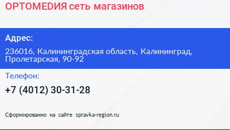 ОРТОМЕDИЯ, сеть магазинов по адресу 236016, Калининградская область, Калининград, Пролетарская, 90-92 в дальнейшем Организация, размещена в следующих категориях: