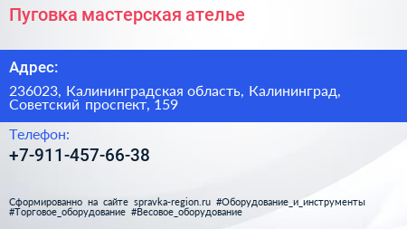 Пуговка, мастерская-ателье по адресу 236023, Калининградская область, Калининград, Советский проспект, 159 в дальнейшем Организация, размещена в следующих категориях: