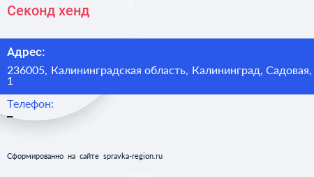 Секонд-хенд по адресу 236005, Калининградская область, Калининград, Садовая, 1 в дальнейшем Организация, размещена в следующих категориях: