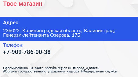 Твое, магазин по адресу 236022, Калининградская область, Калининград, Генерал-лейтенанта Озерова, 17Б в дальнейшем Организация, размещена в следующих категориях: