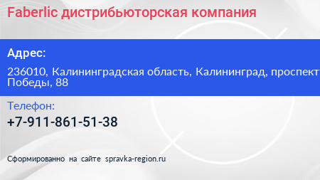 Faberlic, дистрибьюторская компания по адресу 236010, Калининградская область, Калининград, проспект Победы, 88 в дальнейшем Организация, размещена в следующих категориях: