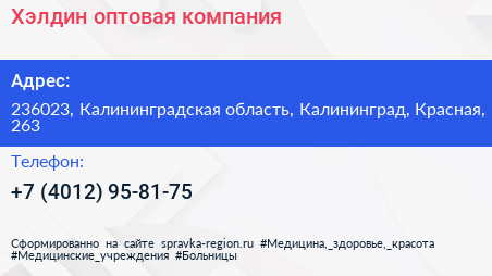 Хэлдин, оптовая компания по адресу 236023, Калининградская область, Калининград, Красная, 263 в дальнейшем Организация, размещена в следующих категориях: