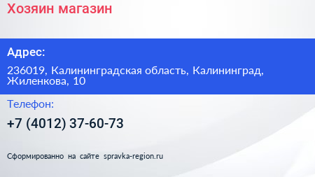 Хозяин, магазин по адресу 236019, Калининградская область, Калининград, Жиленкова, 10 в дальнейшем Организация, размещена в следующих категориях: