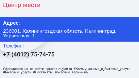 Центр жести по адресу 236001, Калининградская область, Калининград, Украинская, 1 в дальнейшем Организация, размещена в следующих категориях: