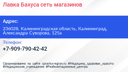 Лавка Бахуса, сеть магазинов по адресу 236028, Калининградская область, Калининград, Александра Суворова, 125а в дальнейшем Организация, размещена в следующих категориях: