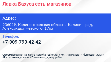 Лавка Бахуса, сеть магазинов по адресу 236029, Калининградская область, Калининград, Александра Невского, 176а в дальнейшем Организация, размещена в следующих категориях: