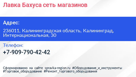 Лавка Бахуса, сеть магазинов по адресу 236011, Калининградская область, Калининград, Интернациональная, 30 в дальнейшем Организация, размещена в следующих категориях: