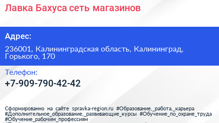 Лавка Бахуса, сеть магазинов по адресу 236001, Калининградская область, Калининград, Горького, 170 в дальнейшем Организация, размещена в следующих категориях: