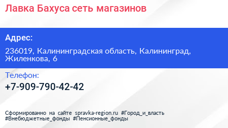 Лавка Бахуса, сеть магазинов по адресу 236019, Калининградская область, Калининград, Жиленкова, 6 в дальнейшем Организация, размещена в следующих категориях: