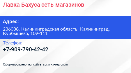 Лавка Бахуса, сеть магазинов по адресу 236038, Калининградская область, Калининград, Куйбышева, 109-111 в дальнейшем Организация, размещена в следующих категориях: