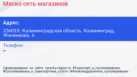 Мяско, сеть магазинов по адресу 236019, Калининградская область, Калининград, Жиленкова, 6 в дальнейшем Организация, размещена в следующих категориях: