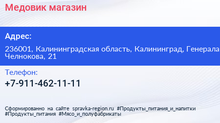 Медовик, магазин по адресу 236001, Калининградская область, Калининград, Генерала Челнокова, 21 в дальнейшем Организация, размещена в следующих категориях: