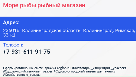 Море рыбы, рыбный магазин по адресу 236016, Калининградская область, Калининград, Римская, 33 к1 в дальнейшем Организация, размещена в следующих категориях: