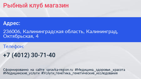 Рыбный клуб, магазин по адресу 236006, Калининградская область, Калининград, Октябрьская, 4 в дальнейшем Организация, размещена в следующих категориях: