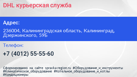 DHL, курьерская служба по адресу 236004, Калининградская область, Калининград, Дзержинского, 59Б в дальнейшем Организация, размещена в следующих категориях: