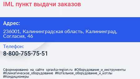 IML, пункт выдачи заказов по адресу 236001, Калининградская область, Калининград, Согласия, 46 в дальнейшем Организация, размещена в следующих категориях: