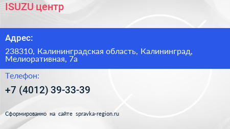 ISUZU, центр по адресу 238310, Калининградская область, Калининград, Мелиоративная, 7а в дальнейшем Организация, размещена в следующих категориях: