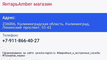#ЯнтарьAmber, магазин по адресу 236006, Калининградская область, Калининград, Ленинский проспект, 55-61 в дальнейшем Организация, размещена в следующих категориях: