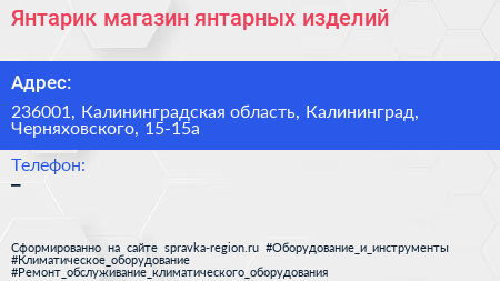 Янтарик, магазин янтарных изделий по адресу 236001, Калининградская область, Калининград, Черняховского, 15-15а в дальнейшем Организация, размещена в следующих категориях: